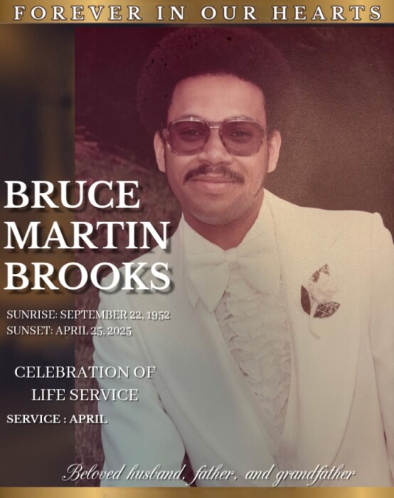 Bruce departed this life on April 25, 2025. He was preceded in death by His father, William Brooks, Sr., and brother, William Brooks, Jr..
